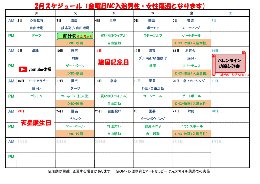 今月のプログラム内容や時間は、こちらの予定表をご覧ください。